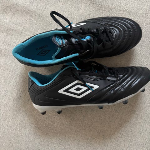 Umbro fotbollsskor för junior i svart färg med snörning. Skorna har fasta dobbar anpassade för spel på natur- eller konstgräs. Ovandelen är i syntetmaterial med mönstrad yta och Umbro-logga på sidan. Passar för barn som spelar fotboll och behöver skor med bra grepp på planen.