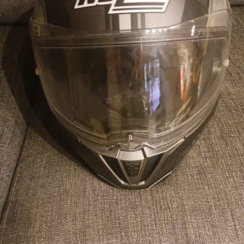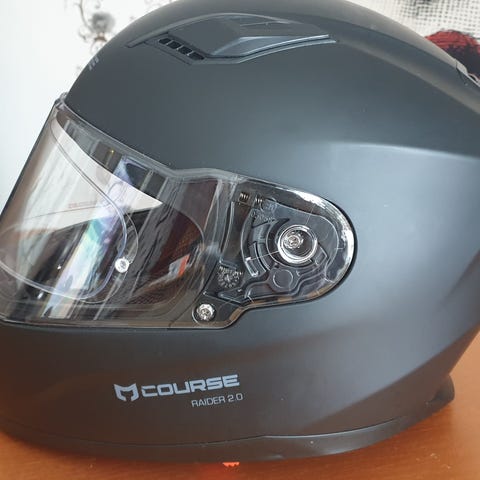 Hjälmen är aldrig tappad och det finns inga märken på den. Den är I mycket fint skick.