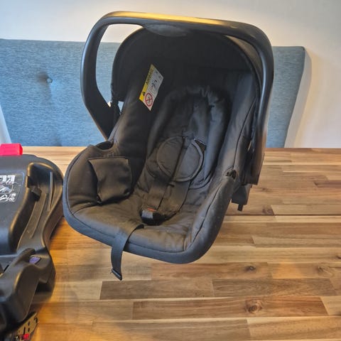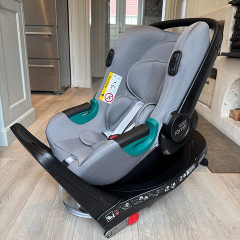 Britax Römer Primo babyskydd med bas för isofixinfästning.