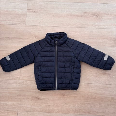 Marinblå lättviktsjacka i dun från Polarn o Pyret. Fint använt skick.