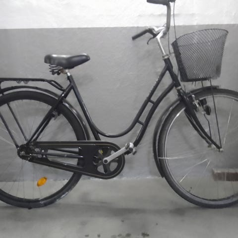 Klassisk svart damcykel från fabrikatet Svalan. Cykeln är utrustad med 3 Välfungerande växlar, pakethållare och en stor korg för maximal lastkapacitet. Cykeln fungerar utmärkt och är körklar!