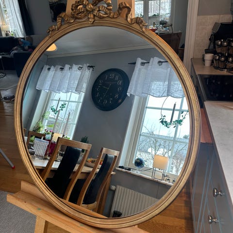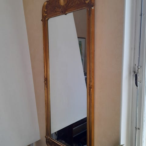 Säljer en elegant förgylld spegel i gustaviansk stil från 1900-talets mitt. En både praktisk och dekorativ spegel som lyfter rummet direkt.