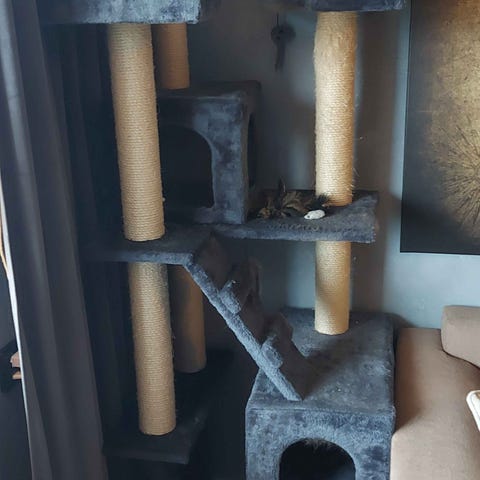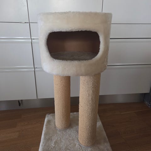 Kattställning/klösträd/katträd. Liggdel högst upp. Använd men har mycket kvar att ge. Bortskänkes! Finns på östra Södermalm. Skickas ej.
