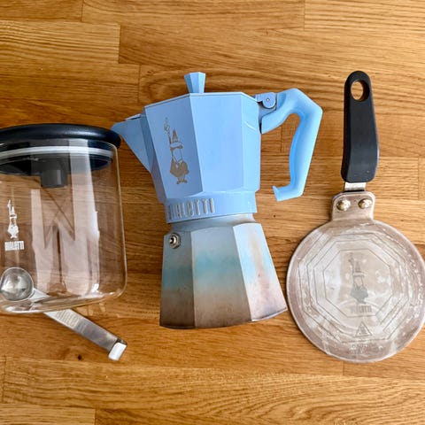 Knappt använda moccabryggare i sällsynt blå färg. Fungerar på alla hällar. 4-koppar 250 kr och 2-koppar 200 kr