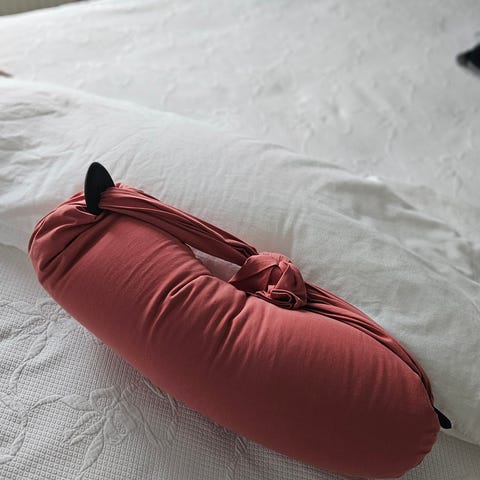 BB Hug Me gravidkudde i gott skick. Färgen är gammelrosa/lila. Väldigt skön under graviditeten och även bra som stöd vid amning med nyfödd.