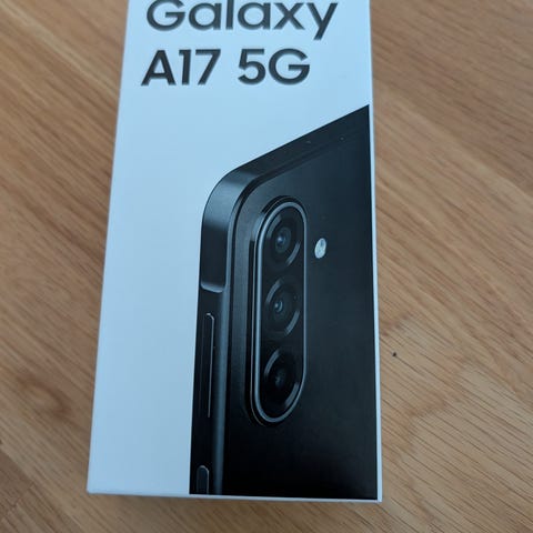 Samsung Galaxy A17 5G mobiltelefon med 128 GB intern lagring. Modellen tillhör Galaxy A-serien och har stöd för 5G. Färgen är svart. Lagringsutrymmet på 128 GB ger plats för appar, bilder, video och andra filer. Lämplig för vardaglig användning som samtal, meddelanden, surf och mediekonsumtion.