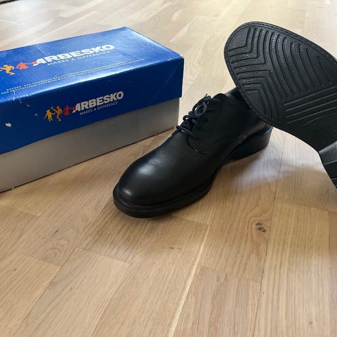 Rizzo 3505 finskor i svart färg, storlek 43. Klassisk snörmodell med spetsig tå och låg klack. Ovandel i slätt material och yttersula med klack i syntet/gummi. Passar som herrskor till exempelvis kostym, kontor eller andra mer formella sammanhang.