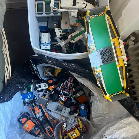 Lego blandade klossar och set. Innehåller lösa legobitar i olika färger och storlekar, flera delvis byggda modeller samt ett antal bygginstruktioner från olika serier, till exempel City, Ninjago, Batman, Friends och Technic. Passar för fritt byggande eller för att komplettera befintliga legosamlingar och set. Exakt antal bitar och fullständighet på enskilda set framgår inte av bilderna.