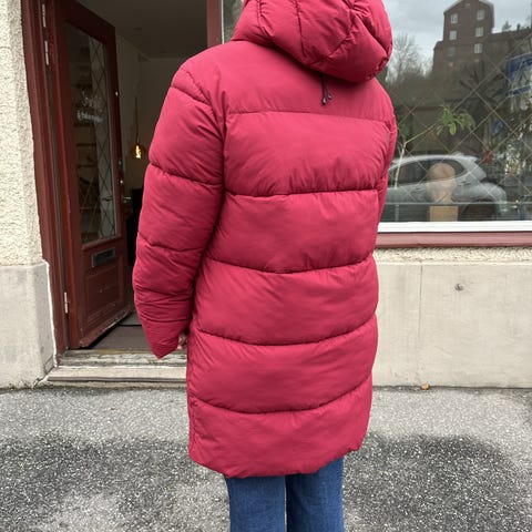 Didriksons jacka modell Tilde i storlek 40, färg Dark night blue. Modellen är lite längre baktill och har rundade slitsar i sidorna. Fast huva med justerbar dragsko och hellång dragkedja. Mjukt och smidigt tyg, vattentät. Mycket fint skick. Nyimpregnerad.