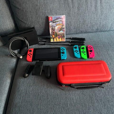 Nintendo Switch Oled med ett par nya kontroller och två spel