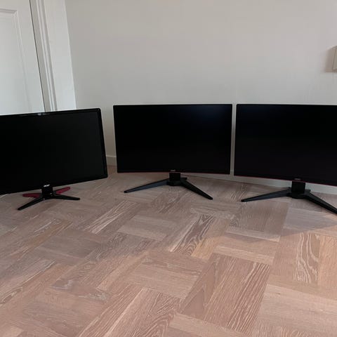 Säljer två stycken Samsung Odyssey 24” Curved datorskärmar i mycket bra skick. Har använts både för gaming och hemmakontor och jag har aldrig haft några problem med dem. Perfekt om du vill köra dual monitor setup för såväl gaming som jobb och studier. Säljs då jag har uppgraderat till en större skärm.