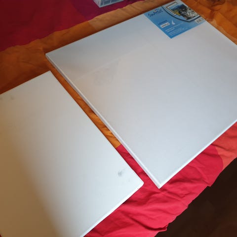 Sense målardukar i vit färg. Flera dukar i olika rektangulära format, 8 st 20x20 cm och 2 st 30x40 cm. Duken är uppspänd på kilram och lämpar sig för målning med exempelvis akryl eller olja. Säljs som paket enligt bilderna.