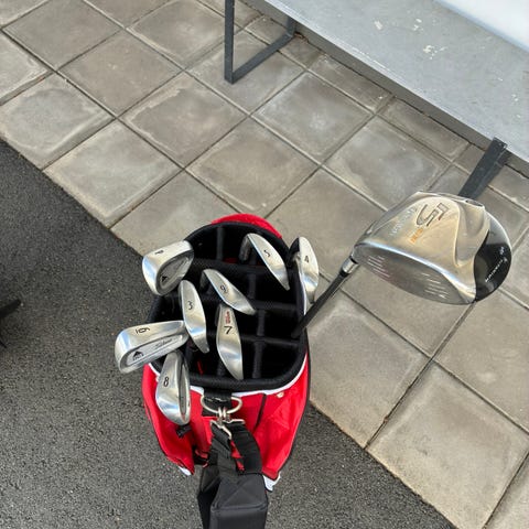 Taylor Made LCG J3-sw. Taylor made bubbleshaft 3W. Open driver 5w samt hybrid. Spalding 60° lw samt spalding putter. Goldwin tourbag i skinn. Dock saknas regnskyddet till bagen. Klubborna är väl använda men helt ok för en nybörjare. Setet skickas inte utan hämtas på plats. Pris på nätet för bara järnklubborna ligger på runt 1500