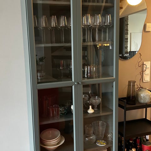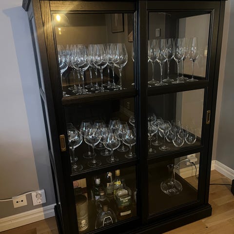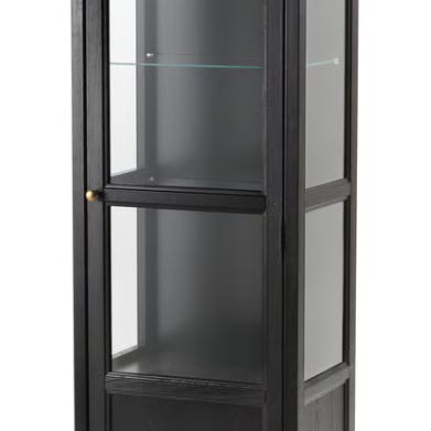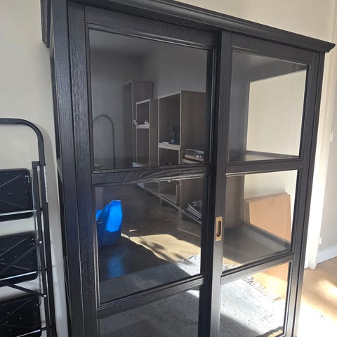 Svart vitrinskåp från IKEA som utgått ur deras sortiment. Mycket fint skick – säljes på grund av flytt.