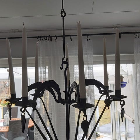 Vacker gjutjärnskrona från Svensk Hemslöjd. Rymmer 18 kronljus.
