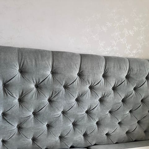 Snygg grå sänggavel som man fäster på väggen till säng som är 120 cm höjd på gaveln är 62 cm
