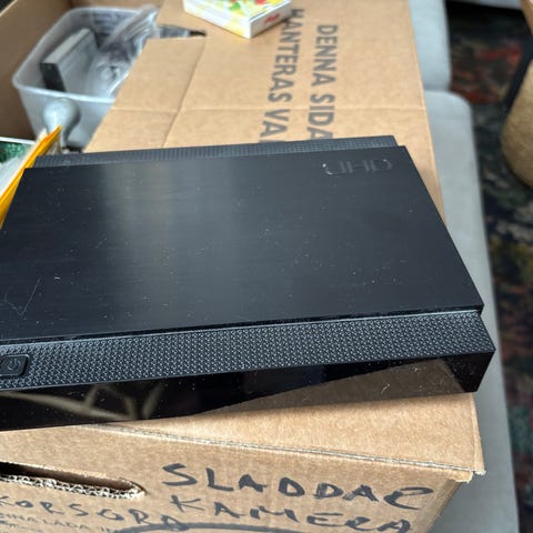 Enheten har strömknapp på framsidan samt indikatorlampor för power och nätverk. Lämplig som mottagare/mediaspelare för anslutning till tv, beroende på kompatibilitet med aktuell leverantör och anslutningar på baksidan.