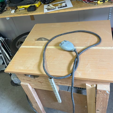 Allt säljs som ett paket – se bild. OBS: Endast bänken, lådorna och skruvstädet ingår. Verktyg, gräsklippare och övriga saker på bilden ingår EJ.