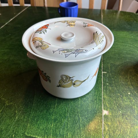 Tomtejul gryta med lock i porslin.
