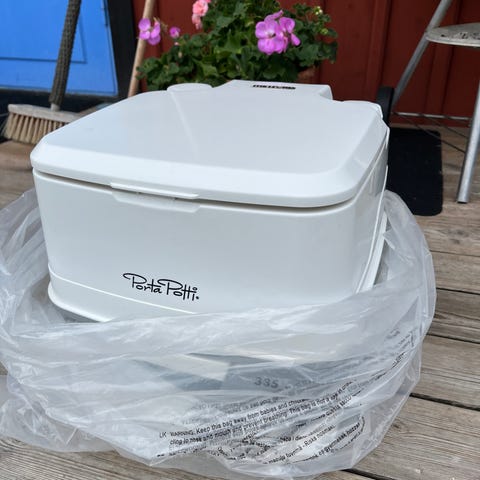 Portabel toalett från Jula ink. kemikalier. Aldrig används eller provfylld med kem. Nypris 1.000:- + 170:- för kem.
