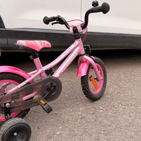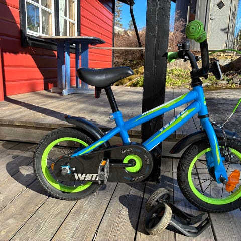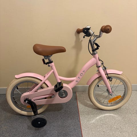 Stoy barncykel med 12" hjul i svart färg. Medföljer stödhjul och bakreflex.