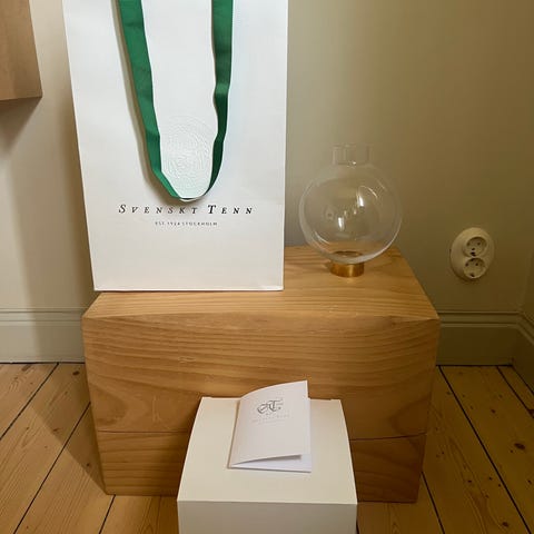 Säljer en vas Iris från Svenskt Tenn. Denna färg tillverkas inte längre. Aldrig använd.