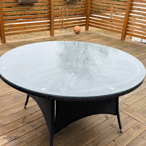 Balkongset runt bord med glasbordsskiva och två stolar svart