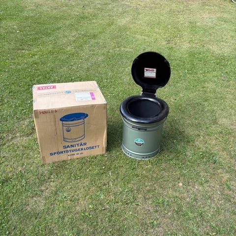 Toaletten kommer tömmas och rengöras innan försäljning. Nypris för liknande modeller ligger ofta runt 15 000–20 000 kr.