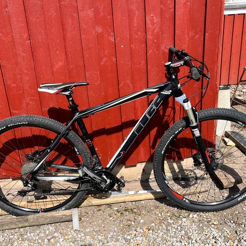 Blockets förslag : Cykeln har en hardtail-ram med framgaffel med fjädring, skivbromsar och rakt styre. Passar för stigcykling, pendling och vardagscykling på varierat underlag. Färgen är mörk med diskreta dekaler. Ramstorlek S lämpar sig för kortare till medellånga cyklister, beroende på kroppslängd och önskad sittposition.