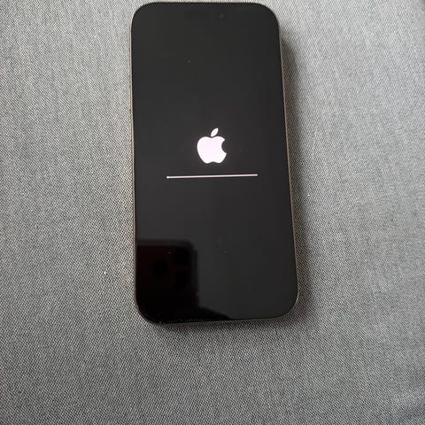 Apple iPhone 15 Pro Max smartphone med 256 GB lagringsutrymme. Modellen har stor pekskärm, trippelkamera på baksidan och frontkamera för samtal och foto. Baksida och ram i ljus metall/silverfärg.