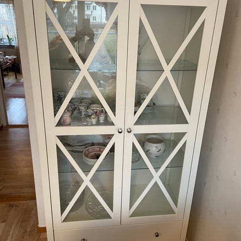Vitrinskåp, h159, d44, b76, fint skick. Innehåll ingår ej.