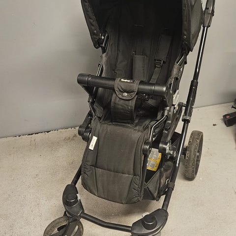 Beemoo resevagn i grått tyg med svart chassi. Vagnen har justerbart ryggstöd, fempunktssele och höj- och sänkbart fotstöd. Framhjulen är svängbara och bakhjulen har broms. Utrustad med varukorg under sittdelen samt extra lång sufflett som ger skydd mot sol och lättare väder. Ventilationslucka med nät baktill. Myggnät samt ventilerande sittdyna medföljer. Vi har haft den som handbagage på chartersemester, den har även en rem som gör den lätt att bära på axeln när den är ihopfälld.