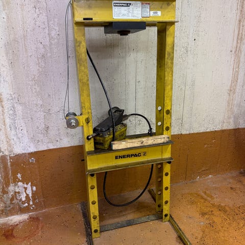 En rörpress med tillbehör. Stl på block är 40mm x2 18 mm och 16 mm