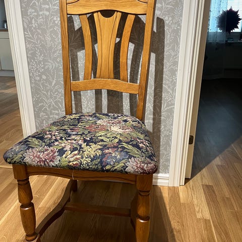 Trästol med grön sits