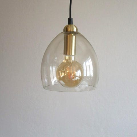 Taklampa Belid med glaskupa o metall fäste.