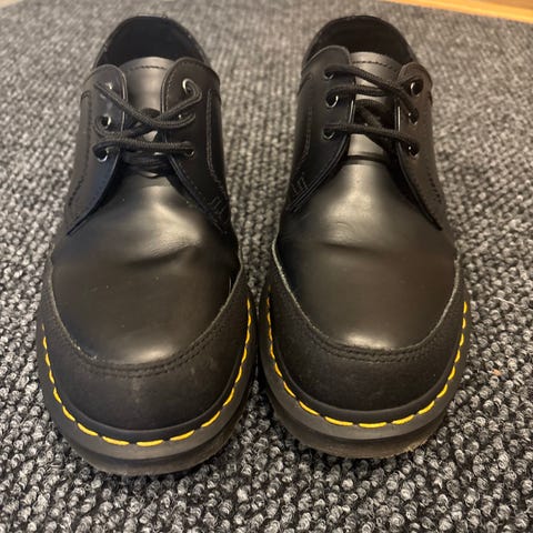 Dr. Martens sneakers i svart färg, storlek 42. Låga skor med snörning och rund tå. Ovandel i slätt material med förstärkt tåparti och gummisula. Passar som vardagsskor eller arbetsskor för herr i storlek 42.