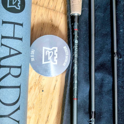 Hardy Demon Sintrix330 flugspö längd 9” klass 5. Originaltub och socka. Till spöt hör även en Hardy UD 4000 med fodral, förmonterad med fluglina Rio Gold & backing. Fiskat med endast 1 gång och spöt lite för snabbt för min smak. Allt i nyskick, endast lite skrapmärken på tuben.