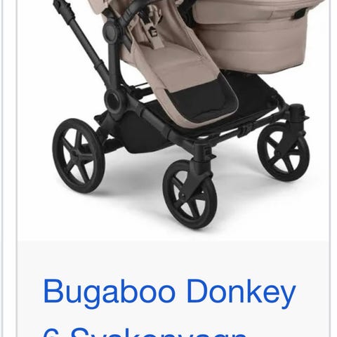 Säljer vår bugaboo donkey i gott men använt skick. Perfekt för barn i nära ålder. Kan användas som singelvagn och dubbelvagn, både sittdel och liggdel. Extra suffletter medföljer samt regnskydd och väska.