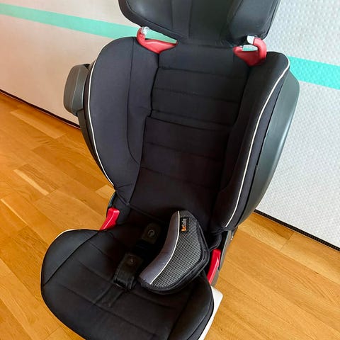 Nu är vi klara med vår Britax Römer Kidfix XP bilbarnstol. Det är en bilbarnstol med isofixfästen, höj- och sänkbart nackskydd och fästen för säkerhetsbältet. Förutom stolen får man även med ett skydd att ha mellan bilsätet och bilbarnstolen för att skydda sätet från slitage.