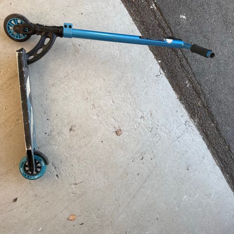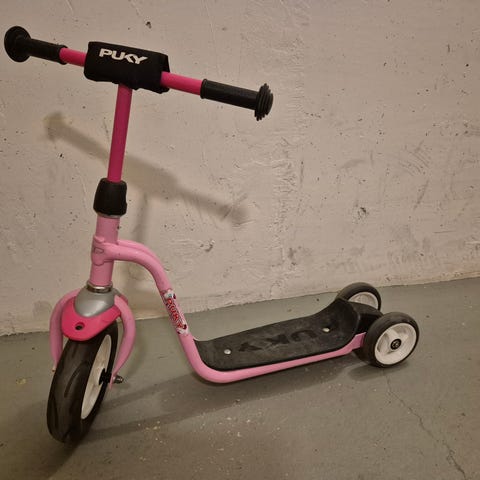 Säljer en sparkcykel med 2 hjul fram. Stabil och fungerar bra.