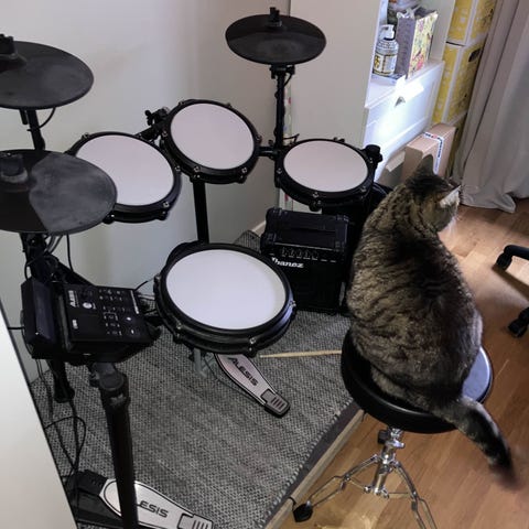 Trummsettet är slagkänsligt så den känner av hur hårt man slår, modulen innehåller en massa olika trumset som man kan välja mellan.