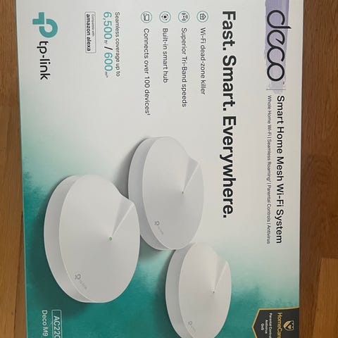 Skapa ett eget WiFi-nätverk enkelt med ett TP-Link Archer Air R5+2x E5 Mesh Wi-Fi-system. Detta system har WiFi 6 med en hastighet på upp till 3Gbps, täckning på upp till 600m2. Finns fortfarande att köpa på till exempel Elgiganten. Endast en av tre enheter använd då det räckte för mig, alla krokar för upphängning är oanvända. Säljer nu då jag har flyttat från hus.