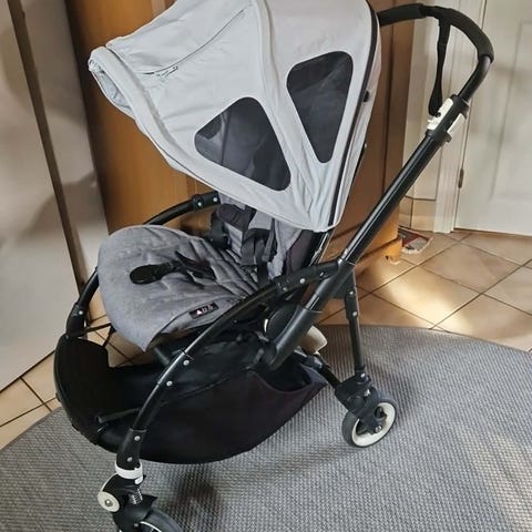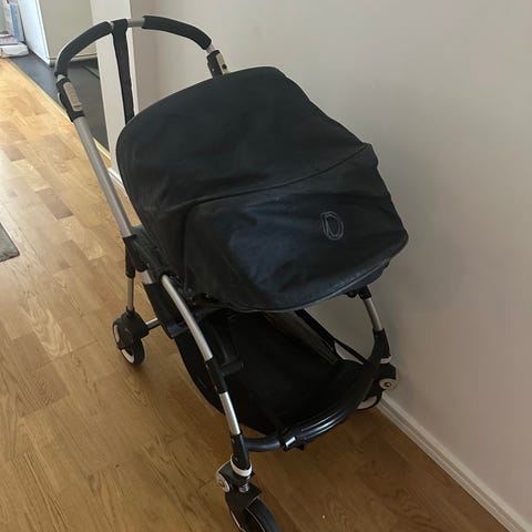 Bugaboo bee 3 med justerbart ryggstöd och fempunktssele. Vagnen har svängbara framhjul och handtag med skumgrepp. Medföljer skyddsväska i svart tyg som kan användas vid förvaring eller transport av vagnen.