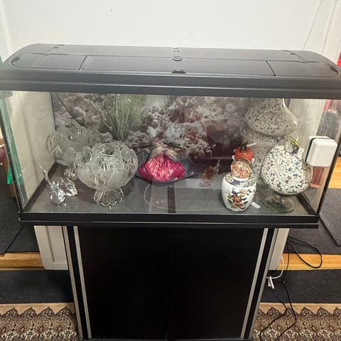 Fluval flex 57l med integrerad co2 injektion från returpump satt dit en extra original lampa för bättre ljus filterkamnare baktill funkar för både sötvatten och saltvatten vill man starta upp salt vatten så kan jag sälja med allt som behövs för att starta sitt första salt