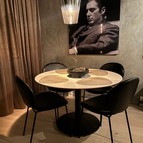 Ett 120 runt svart matbord.