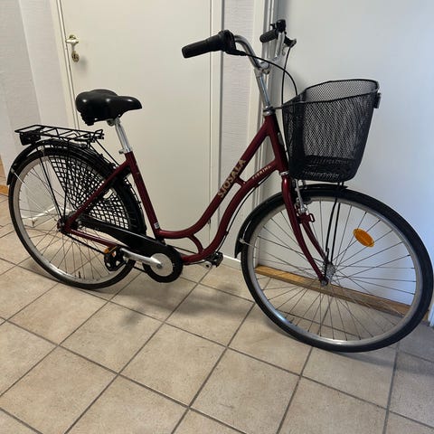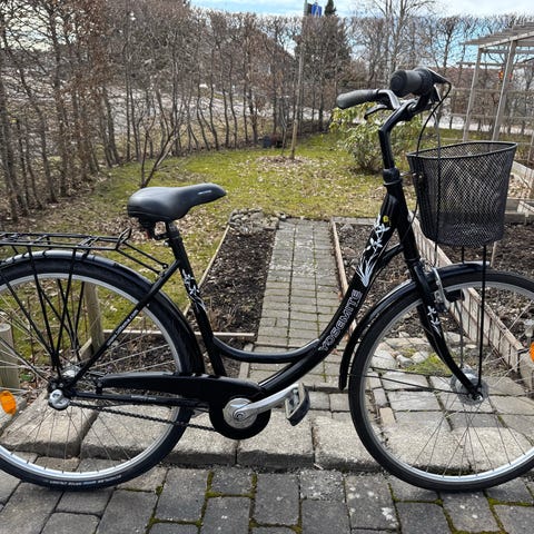 Fin och välvårdad damcykel från Sjösala som endast använts 2–5 gånger. Har mest stått i garage, så däcken behöver pumpas och baklampan är trasig. I övrigt i väldigt fint skick – nästan som ny.