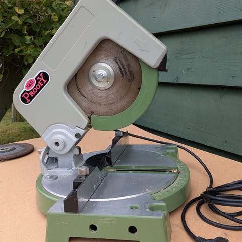 Manuell geringssåg med sågstativ i metall.