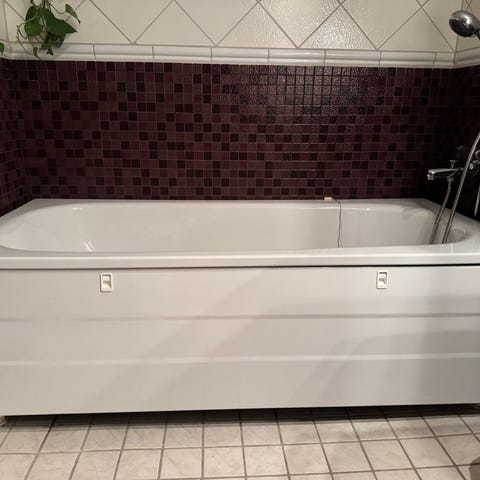 Mindre badkar vit emaljerad plåt. Inte plast.