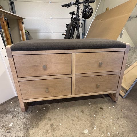 En lekplint eller som möbel med förvaring i locket o lucka i mitten o låda längst ner