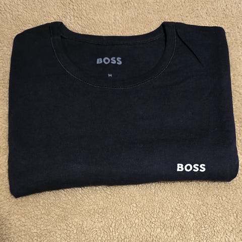 Säljer en stilren långärmad pikétröja från BOSS. Modellen är klassiskt svart med en diskret, ton-i-ton broderad logotyp på bröstet. Strukturerade paneler på axlarna och underärmarna samt en neongrön accentfärg i kragen ger plagget en modern känsla.